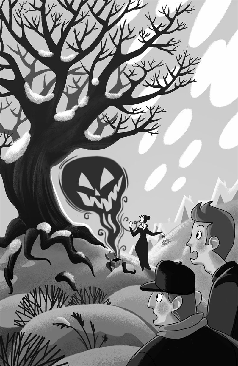 Ларец тут же распахнулся, и из него повалил дым, густой и чёрный, с яркими вспышками искр. И вдруг какой-то невиданной силой рабочих отбросило в сторону, и они, не успев опомниться, оказались в сугробе. С изумлением и ужасом наблюдали, как из ларца, вылетело что-то тёмное и огромное, похожее на привидение – с дырками на вместо глаз и невообразимых размеров пастью. Грозно проплыв над ними, призрак пролетел дальше, догнал бредущую по дорожке Зою Львовну и, ни секунды не колеблясь, залетел прямо в её зевающий рот.