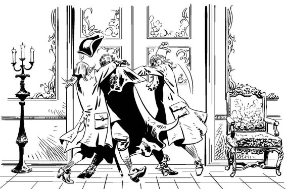 А в это время за стенами кабинета происходили странные вещи. Посланник, так желавший остаться незамеченным, чуть только скрылся из поля зрения драгун, стоявших в карауле у дверей князя, получил удар по голове. Он даже и пикнуть не успел, не то что позвать на помощь. Оглушенного масона затащили в боковой коридор. Уже знакомый нам слуга в очередной раз выглянул из колоннады, посмотрел на дверь кабинета Александра Даниловича и, убедившись, что дело его рук осталось незамеченным, поднял оброненную посланником шляпу и поспешил следом за похищенным масоном.