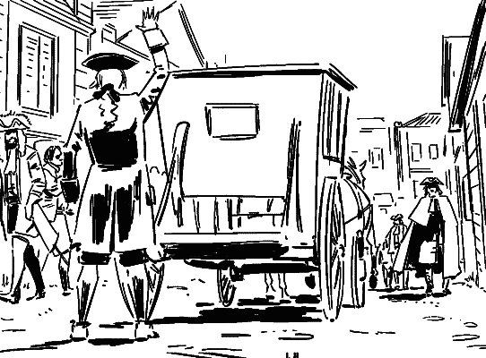 В сей момент раздался шум в соседнем ряду: детвора, расшалившись, толкнула молодую девку, которая несла за хозяйским поваром большую корзину, полную яиц. Вмиг по мостовой разлетелись скорлупки, желтки смешались с уличной пылью. Девка со страха присела на корточки, тщетно пытаясь отыскать уцелевшие яйца. Но над ней уже навис толстяк-повар с плеткой: