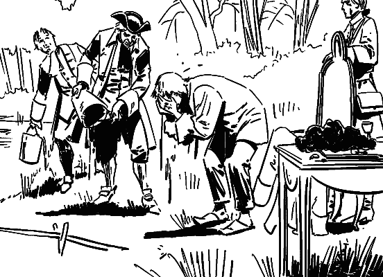 – Я тебе сейчас так ворочу, что мало не покажется. – Потом ободрил избитую служанку: – Не бойся, он тебя не тронет! – И снова повернулся к повару: – Если я еще раз увижу, что ты девку бьешь, я тебе…