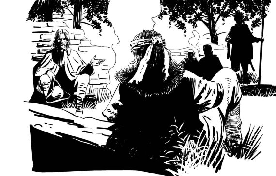 – Бог в помощь, люди добрые! – крикнул он, выехав из кустов.