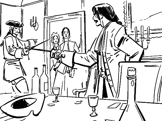 Хромов взял со стола шпагу, вынул ее из ножен и решительно направил прямо в грудь нашему герою: