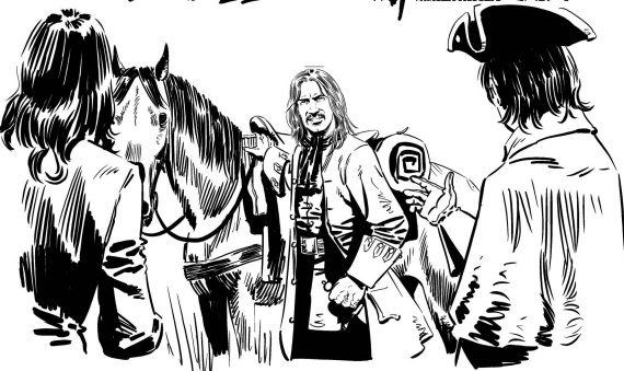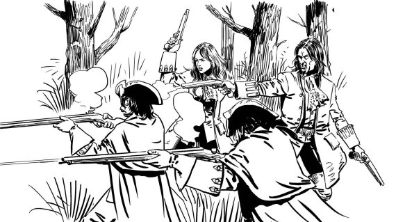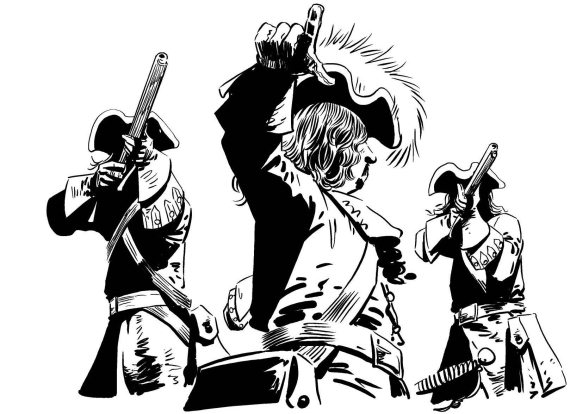 Другой бандит прицелился в хваткую французскую девку, но был опрокинут навзничь метким выстрелом Ла Шанье. Мари выхватила у убитого шпагу, но тут же пуля ожгла плечо, она осела от боли, и в этот миг за ее спиной снова выросла фигура Ла Шанье с двумя пистолями в руках. Его выстрелы задержали бандита, рванувшего к Мари, чтобы добить раненую шашкой.