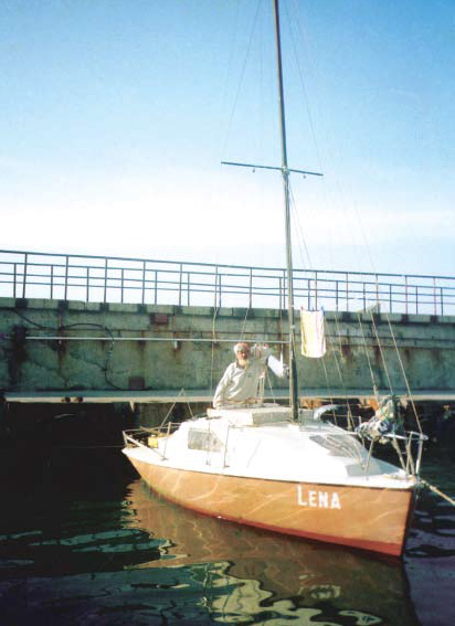 О существовании этого самого «СОВМАРКЕТА» и его любезной сердцу продукции Евгений Гвоздев узнал из телешоу «Поле чудес», где еще при Листьеве в качестве фона и приза фигурировала яхта. Яхтсмен из Махачкалы перелетел Каспийское море, которое до этого более 40 раз пересекал на яхтах, и в буквальном смысле поселился на фирме, чтобы через полгода, в феврале 92-го, пригнать в Махачкалу новенькую «Лену» с ярко-оранжевыми бортами. У него был контракт на три года плавания и должность испытателя. Правда, размеры зарплаты или, скажем, приза за успешное проведение самих испытаний, как, впрочем, и маршрут плавания, в этом удивительном документе не оговаривались, и порой кажется, что его вручили настырному махачкалинцу вместе с яхтой, чтобы он оставил фирму в покое. Хотя бы на три года. От серийных «микриков» его 5,5-метровая яхта, которой предстояло идти то ли вокруг Европы, то ли в Америку, отличалась только тем, что при ее формовке положили два дополнительных слоя стеклоткани на днище. И все – плыви!
