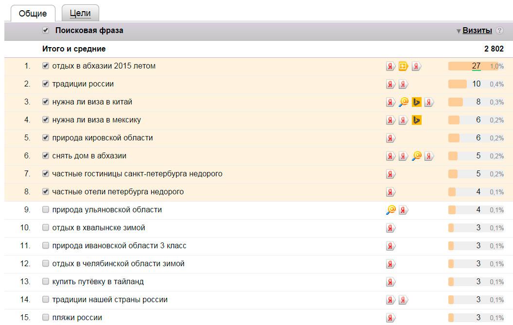 Рисунок 75. Скриншот из «Яндекс.Метрики» со списком