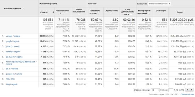 Рисунок 80. Отчет «Электронная торговля» счетчика Google Analytics