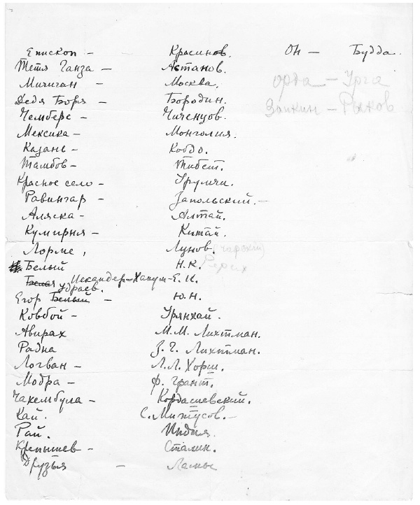 Кодовые списки № 1. Написано рукой Елены Рерих