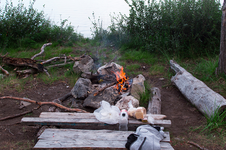 Когда я поужинал, то вдруг обнаружил, что на телефоне появился интернет. Весь оставшийся вечер я использовал для того, чтобы пообщаться с друзьями по видеосвязи. Удивительно, что связь доходила до этого места. В тот вечер было забавно сидеть в лесу возле костра и общаться с людьми, которые находятся в городе. Ты в эти мгновения находишься в особом состоянии, присущем для всех вечерних костровых посиделок, а друзья сидят дома и аналогичных ощущений не испытывают. Поэтому часто пробивало на смех, когда разговорные темы начинали восприниматься с совершенно разных углов.