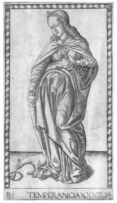 Умеренность, одна из «карт Мантеньи», соответствующая одноименному большому аркану в классических колодах Таро