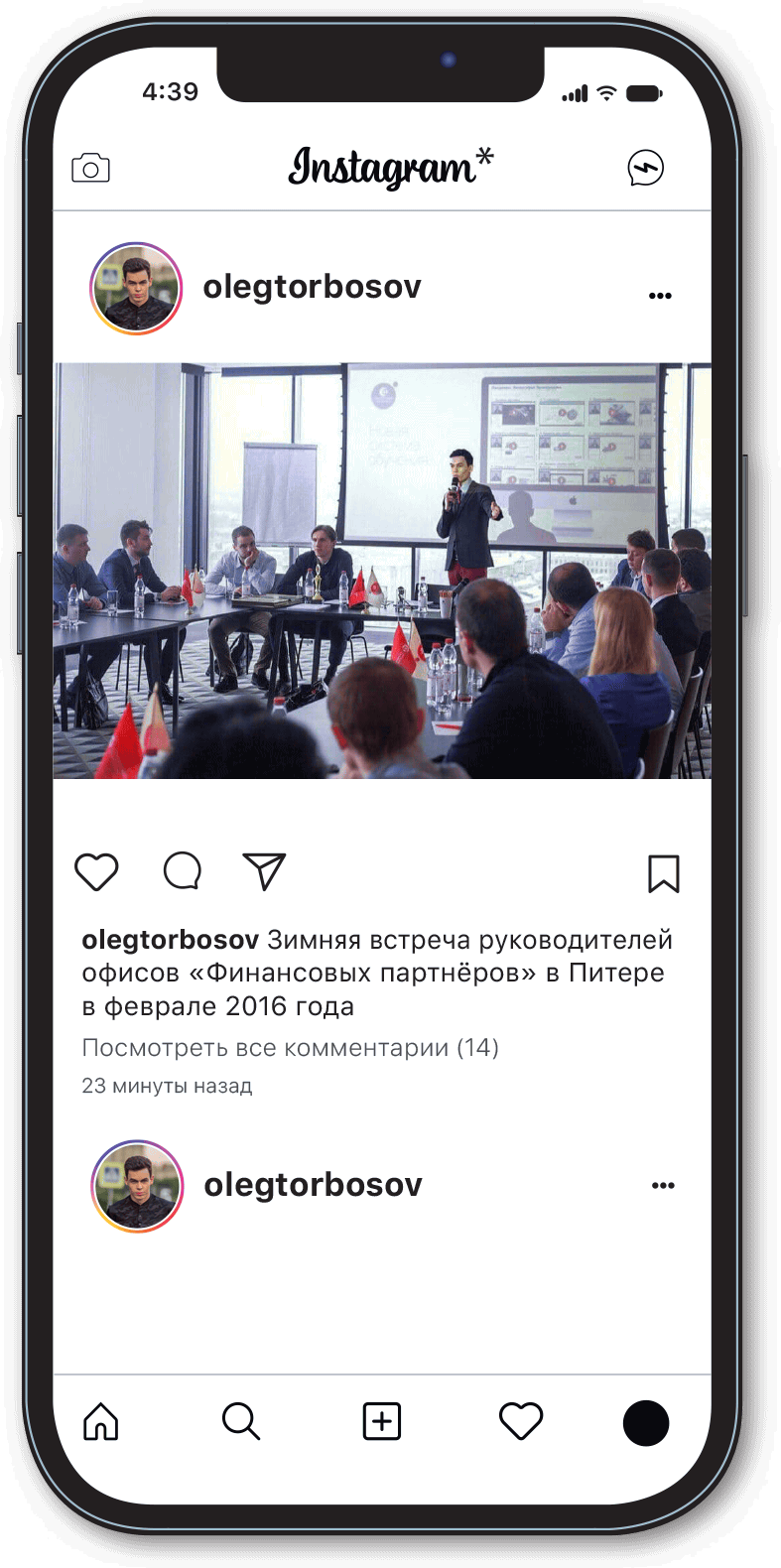 На последнем слайде презентации я показывал свой аккаунт в «Инстаграме»*, и несколько сотен человек подписывались на меня. Так, от выступления к выступлению росла моя узнаваемость среди предпринимателей, часть из которых в будущем станет клиентами моего агентства недвижимости.