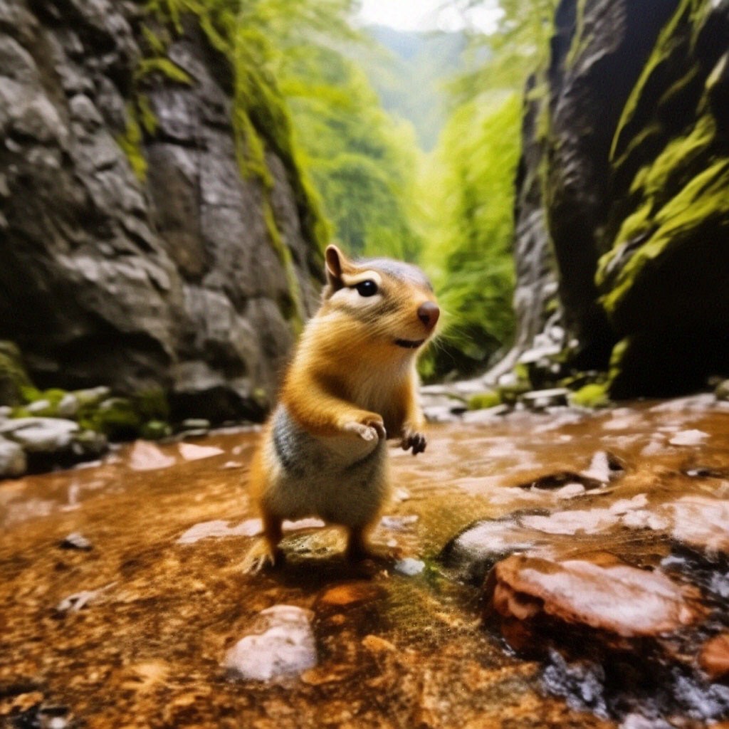 Но тираннозавр, всё равно, считал себя самым сильным и страшным. Подтолкнув в спину бурундука своей мордой, он смело шагнул вперёд. Шаг за шагом, они всё глубже заходили в разинутую пасть ущелья.