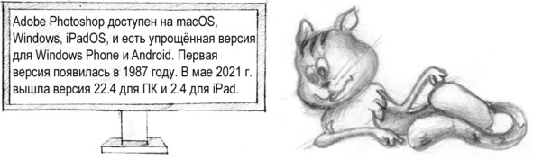 «Фотошоп – любимая компьютерная программа, если не считать, конечно, некоторых игрушек. С ее помощью можно нарисовать картину, черно-белую фотографию сделать цветной или, наоборот, цветную черно-белой, отретушировать старую фотографию, убрав царапины и потертости. Фотошоп позволяет выполнить фотомонтаж, то есть две фотографии объединить в одну. Причем сделать это так, что можно и не заметить границ между фотографиями. А какие изумительные фильтры, различные эффекты и невероятное количество других возможностей у этой программы!