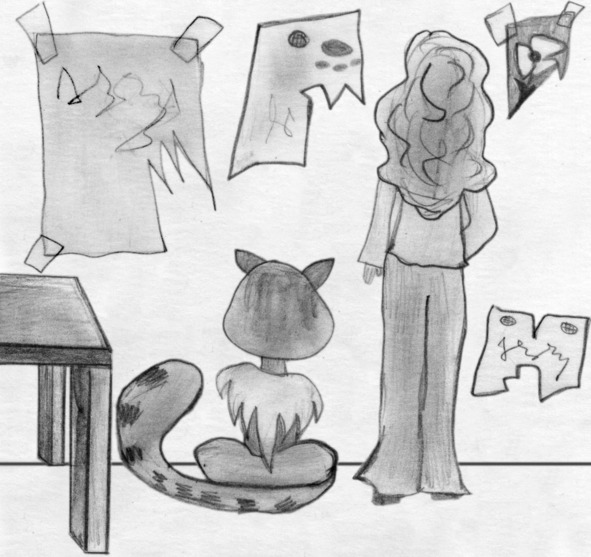 Буквально в двух шагах от них находилась небольшая арка, через которую необходимо было пройти. Процедура проверки заняла несколько секунд и, получив разрешение, путешественники прошли к ближайшей двери и попали в обширный холл. Огромные информационные табло висели прямо в воздухе. Куда ни кинь взгляд, везде какой-то текст, рисунки, диаграммы. Под потолком, в разных углах висели камеры слежения. Со всех сторон в стенах холла было множество дверей. Кроме того, несколько лестниц вело как вверх, так и вниз. Не зная, куда пойти, котенок подошел к небольшой дверце и только попытался ее открыть, как появилась строгая надпись: «Введите Ваш идентификатор и пароль». В соседнюю дверь удалось зайти без проблем, однако в длинном коридоре, в который они попали, на всех дверях висели предупреждающие таблички «Посторонним вход воспрещен».