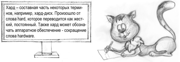 – Ну, как же, в русском языке много новых слов, их еще называют неологизмами, – начала объяснять Александра, – и от слова hardware, – сказала она по-английски, – произошло слово хард, которое обозначает аппаратное обеспечение компьютера, ну там железки всякие.