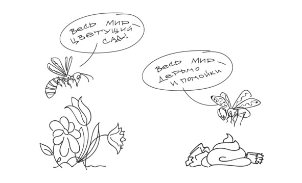 Фильтры бывают и коллективными. Представим себе деревню, где живут от рождения не очень хорошо видящие люди. Близорукость у них, например, генетическая. Ну… бывает. По этой причине животных, которые по размерам меньше слона, в их картине мира вообще не существует. Издалека зайцев они рассмотреть не могут, а близко к ним не подойти, потому что звери убегают. В общем, окружающий их мир населяют одни слоны. Жители старательно пытаются выращивать капусту, которую нещадно поедают зайцы. Но так как в их картине мира не существует мелких животных, проблему нехватки капусты они связывают исключительно со слонами. Возможно, люди борются с огромными зверями всеми доступными средствами: гоняют, отстреливают, всячески изводят. Делают они это вполне успешно, и слонов действительно становится меньше. Но капусты больше не становится. А возможно, не борются, решив, что слон животное полезное, а съеденная часть капусты – просто плата за оставшуюся часть урожая, так устроен мир. По-моему, очень похоже на совет директоров многих организаций.