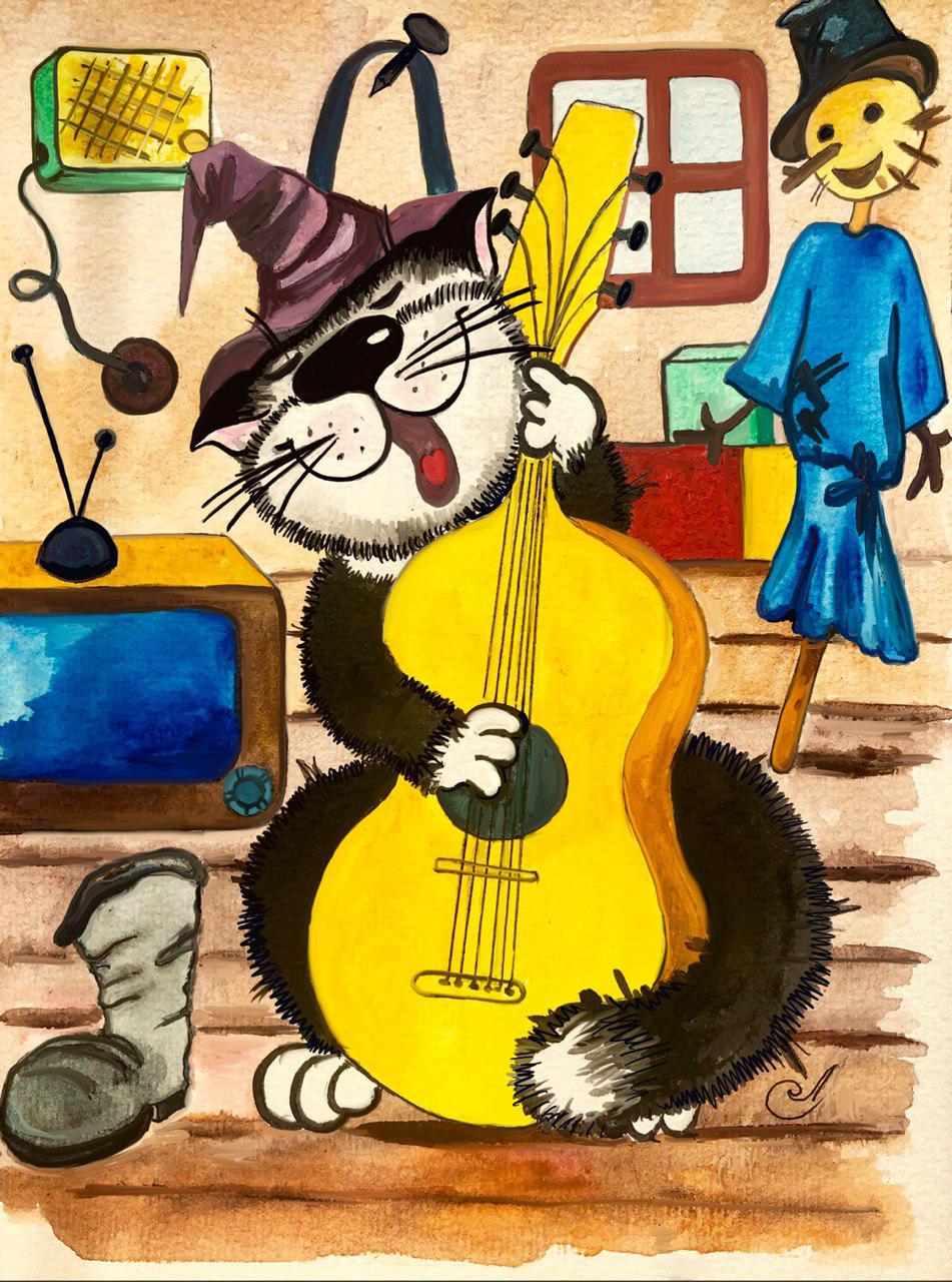 – Тут мастер нужен. Или ты сам должен научиться это делать. То есть ты должен стать мастером и настроить гитару, – сказал кот.