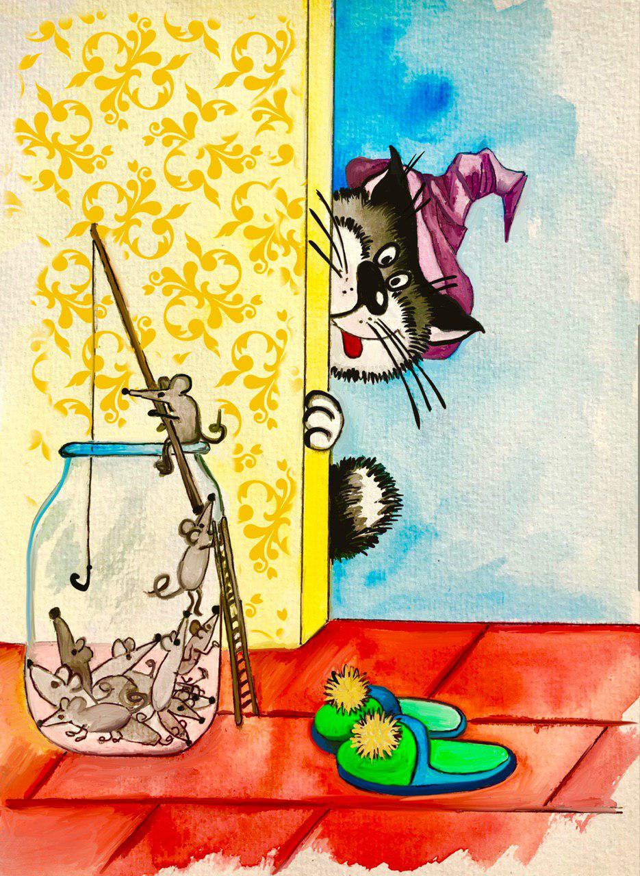 – Усач, а ты мог бы словить несколько мышей и принести их нам в стеклянной банке?