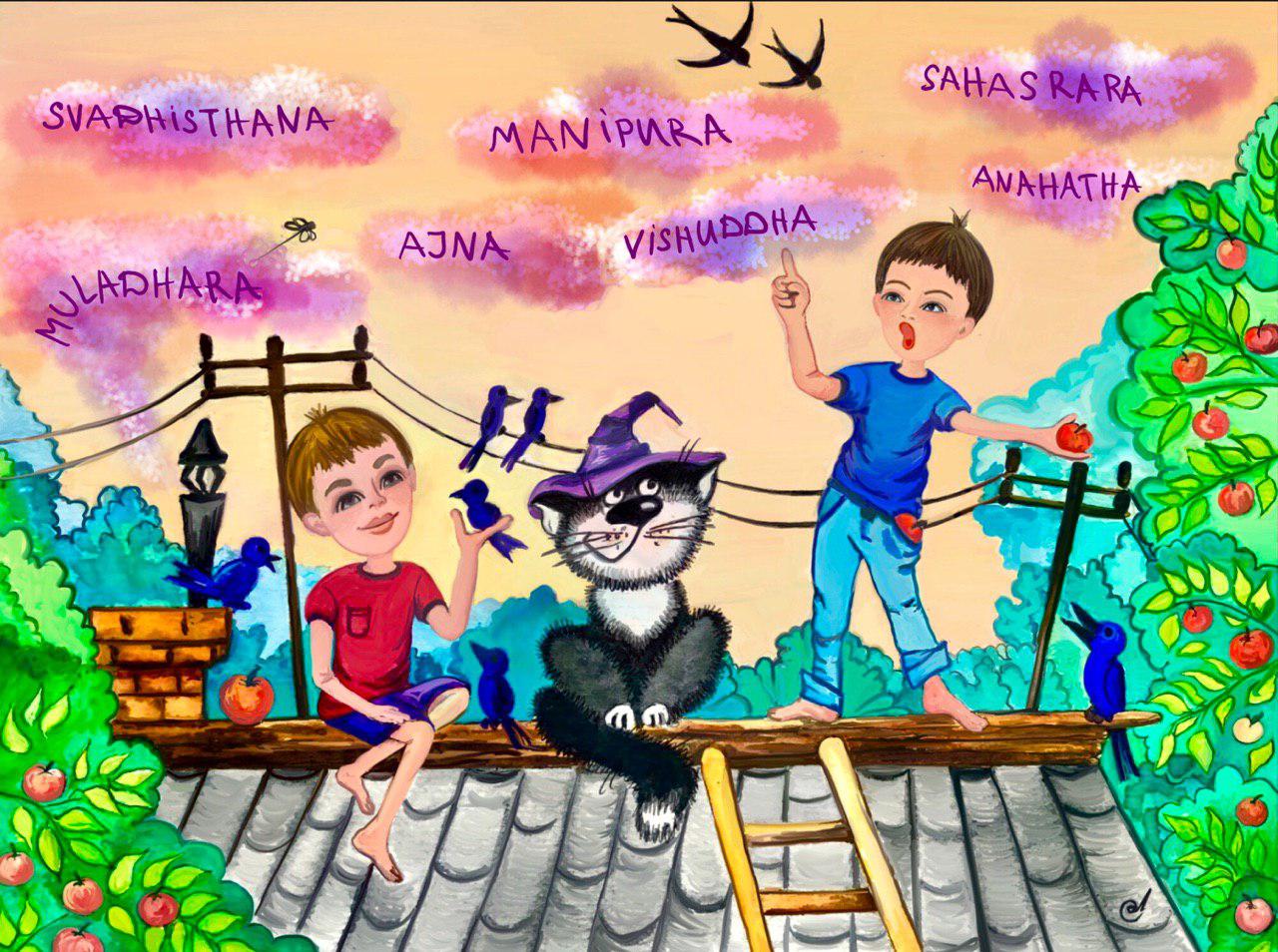 Ребята ещё долго расспрашивали кота о разных качествах человека и на каких чакрах они находятся. Им было интересно, где находятся страхи и как их победить, где находится честность, а где находится блок, который мешает быть правдивым, где находится лень. Для них это была очень интересная игра. Только магический кот знал, что это совсем не игра, и дальше трудолюбиво старался сделать из ребят Магов.
