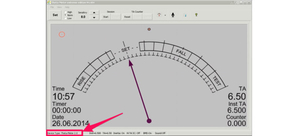 После этого убедитесь, что в нижнем левом углу окна программы правильно отображен тип вашего Тета-метра.