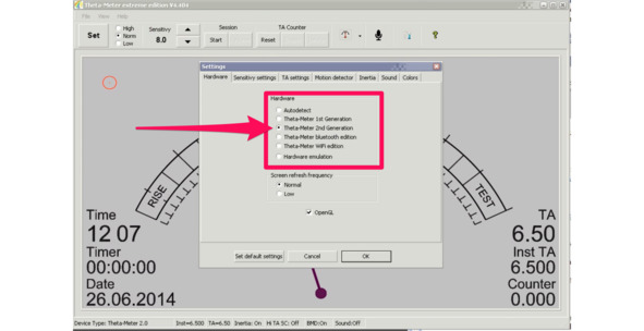 Все остальные настройки программы по умолчанию позволяют сразу начать работу с Тета-метром.