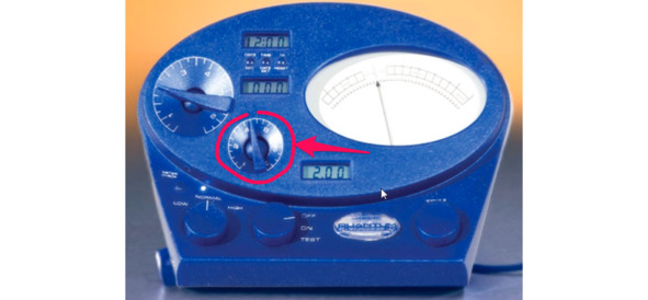 Ручка тона даёт знать о «тоне» – уровне возбуждения коры головного мозга, которое, соответственно, передаётся всей нервной системе, в т.ч. и нервным окончаниям на ладонях, где мы снимаем измерения. На старых стрелочных приборах «Ручку тона» необходимо подстраивать. Если, во время сессии, прояснитель воспроизводит переживание и ему удаётся увидеть что-то в точности таким, как оно есть, то немедленно спадает напряженность его состояния. От этого электрическое сопротивление ослабевает, стрелка падает вправо по шкале и процессору приходится подстраивать «Ручку тона», чтобы вернуть стрелку в положение «Set».