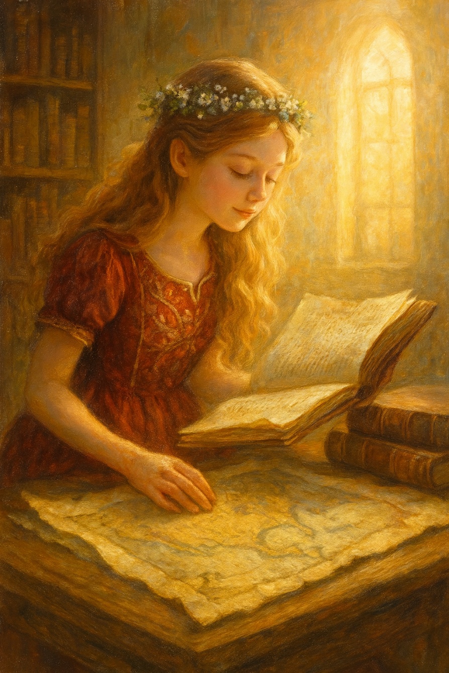 Элиза открыла книгу, и её глаза засветились от волнения, когда она увидела старую карту, нарисованную на одной из страниц. Это была карта, ведущая в лес – вглубь, к месту, которое, согласно легенде, было связано с магическим существом. На карте было отмечено место, где когда-то жил дракон. Элиза ощущала, как её сердце забилось быстрее, и она решила, что должна найти это место.