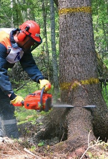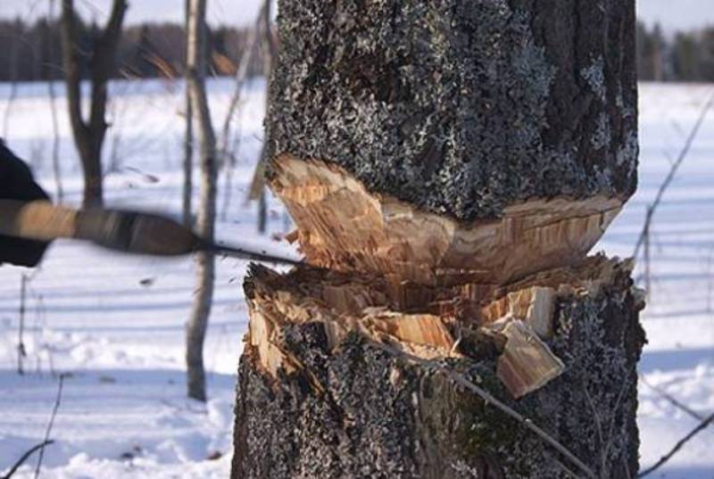 – Нет, всё совсем не так. Сейчас, Никита, я тебе об этом расскажу. Сначала дерево надо спилить. Этим занимаются специальные машины. Но ещё совсем недавно деревья рубили лесорубы. Давным-давно они пользовались топорами. Посмотри, это лесоруб с топором.