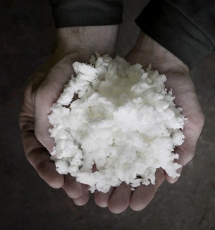 Её заливают раствором хлора и соды. После отбеливания получаются белые пушистые комочки.