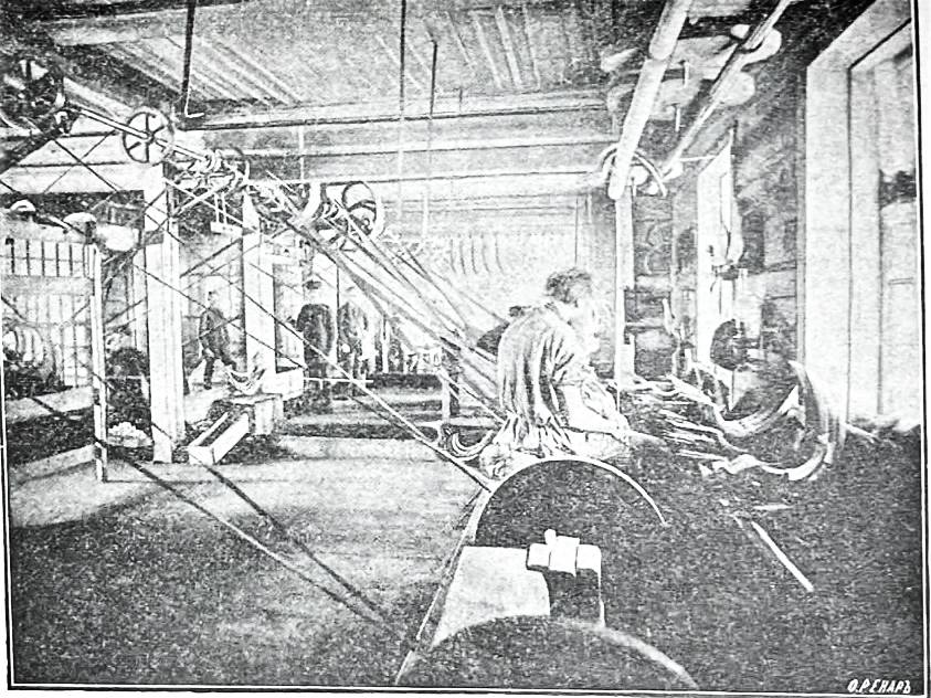 Внутренний вид шлифовочного отдела серповой фабрики Е. Ф. Ковалева[123]. Фото О. Ренара, 1910 г.