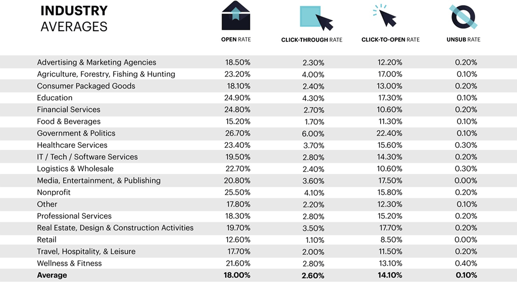 У триггерных цепочек показатели в два-три раза выше (потому что они ситуативные). У ПРОМО-рассылок в среднем показатели ниже. В e-commerce могут быть в два раза меньше (промо-рассылки).