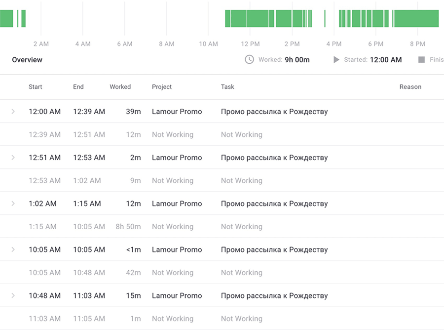 Например, задача: отправить кампанию на Новый Год. Запланированных часов – 9.