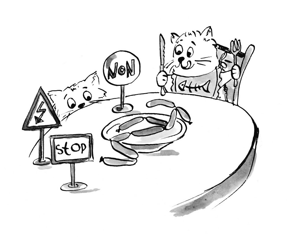 Вот и получается на выходе самовоспроизводящийся «человечек-обесцениватель себя». Который к тому же чувствует, что у всех вокруг все лучше и они достойны этого, а он – нет. Как этот маленький котик, который из-за неуверенности в себе не осмеливается отобрать сосиски у более наглого: