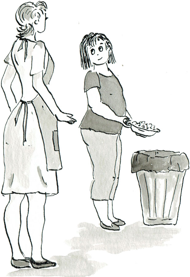 Привычка доедать и убеждение, что выбрасывать еду нельзя, будут очень мешать тебе уменьшать количество съедаемой еды.