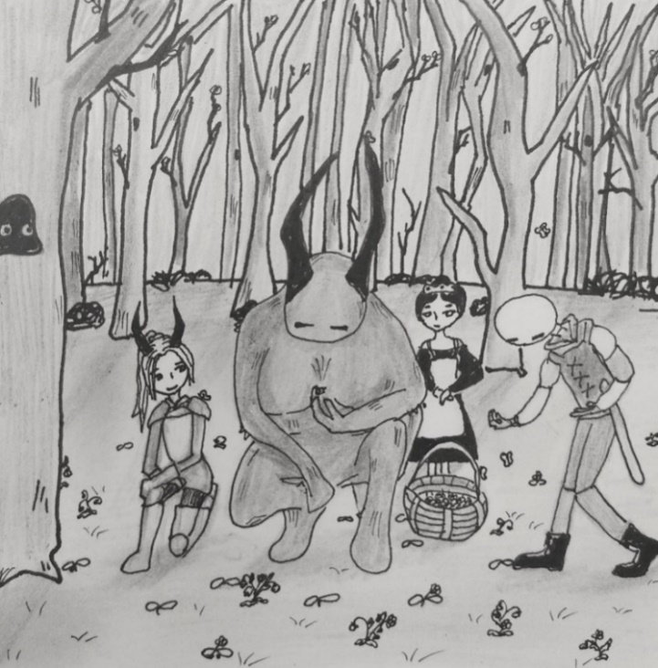 – Король демонов попросил меня испечь ему торт с земляникой сегодня. Так что, если не хотите, чтобы он спалил вашу деревню, помогите мне. Всем будет лучше, если он получит свой торт вовремя, – пробасил демон, аккуратно складывая ягодки в лукошко.