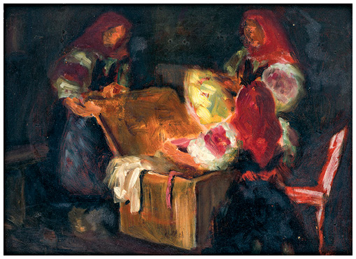 Для каждой девочки в семье большуха отводила сундук, куда годами складывали приданое. Большую его часть девочка готовила сама, едва научившись прясть и вышивать. Там же хранили праздничные одежды, подтверждавшие «честь и славу рода»[14]. Старшая женщина решала, что именно из ценных вещей достанется ее дочерям или внучкам, поэтому сундуки девушек могли пополниться у одной прабабушкиной шубой, у другой – бабушкиными шалями, у третьей – праздничным платьем, которому уже несколько веков. Лишь одной доставался лучший материнский головной убор. Остальные, если семья не была богата, даже на собственную свадьбу брали красивый убор в долг, а потом возвращали его. Отсюда можно понять, что в сказках приданое героиням дает Баба Яга – большуха.