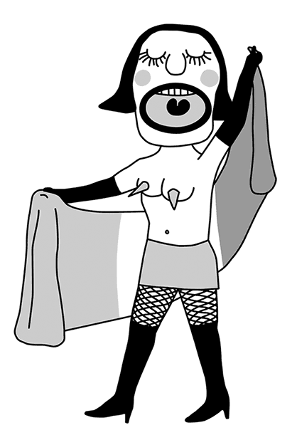 И вот они все вместе пришли в лес. В лесу стоял замок, весь в лесах, на временной вывеске было намалевано желтой краской: «Стриптиз-клуб для слепых “Леди Годива”», а чуть пониже – извиняющееся: «Витрина оформляется». Навстречу им вышла хозяйка замка, герцогиня Флора, дама, страдающая хронической эмигренью, даже в старости сохранившая следы былого безобразия на лице.