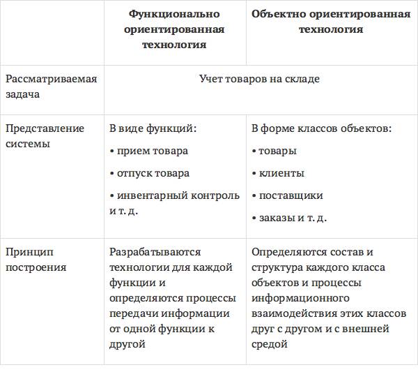 Сравнительная характеристика функционально ориентированных и объектно ориентированных технологий