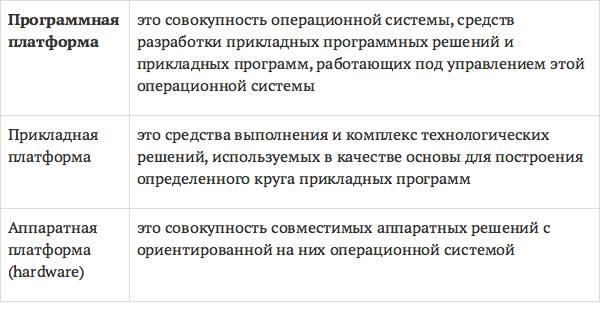 В информационных технологиях под термином «платформа» в широком смысле обычно понимается совокупность следующих компонентов: