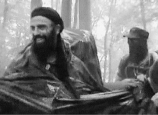 Главарь боевиков Руслан «Полковник» Хучбаров в тренировочном лагере террористов в Ингушетии, кадр с видеозаписи с подготовкой теракта. Предположительно июнь 2004 года