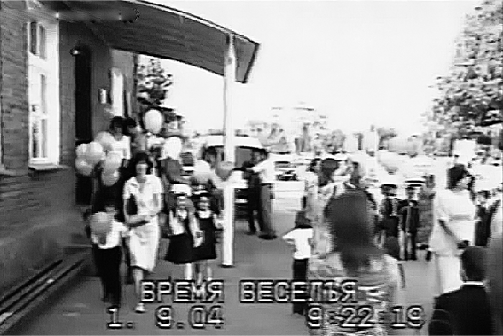Кадр из видеозаписи с линейки перед школой. Позднее на эту же камеру будут снимать происходящее внутри после захвата