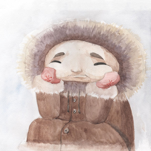 Малыш-эскимос не знает, чем заняться и с кем поиграть.