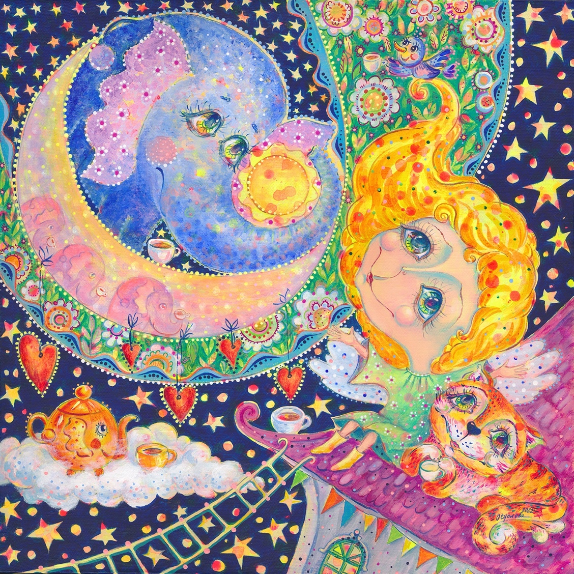– Да, и не только, у меня в саду ещё есть необыкновенные деревья, – продолжил Волшебник, – есть розовое дерево, на нем цветут розы, одновременно разного цвета, и белые, и кремовые, и сиреневые. Под розовым деревом живет розовая фея, она на ночь укрывает розочки теплыми одеялами и поет им нежную колыбельную. Розочки большие неженки. И это замечательно, ведь когда ты до краев наполнен нежностью, ты с удовольствием даришь ее всем вокруг. Есть леденцовое дерево, его очень любят божие коровки. Они жуткие сладкоежки. Есть огромные цветы, в их бутонах живут светлячки.