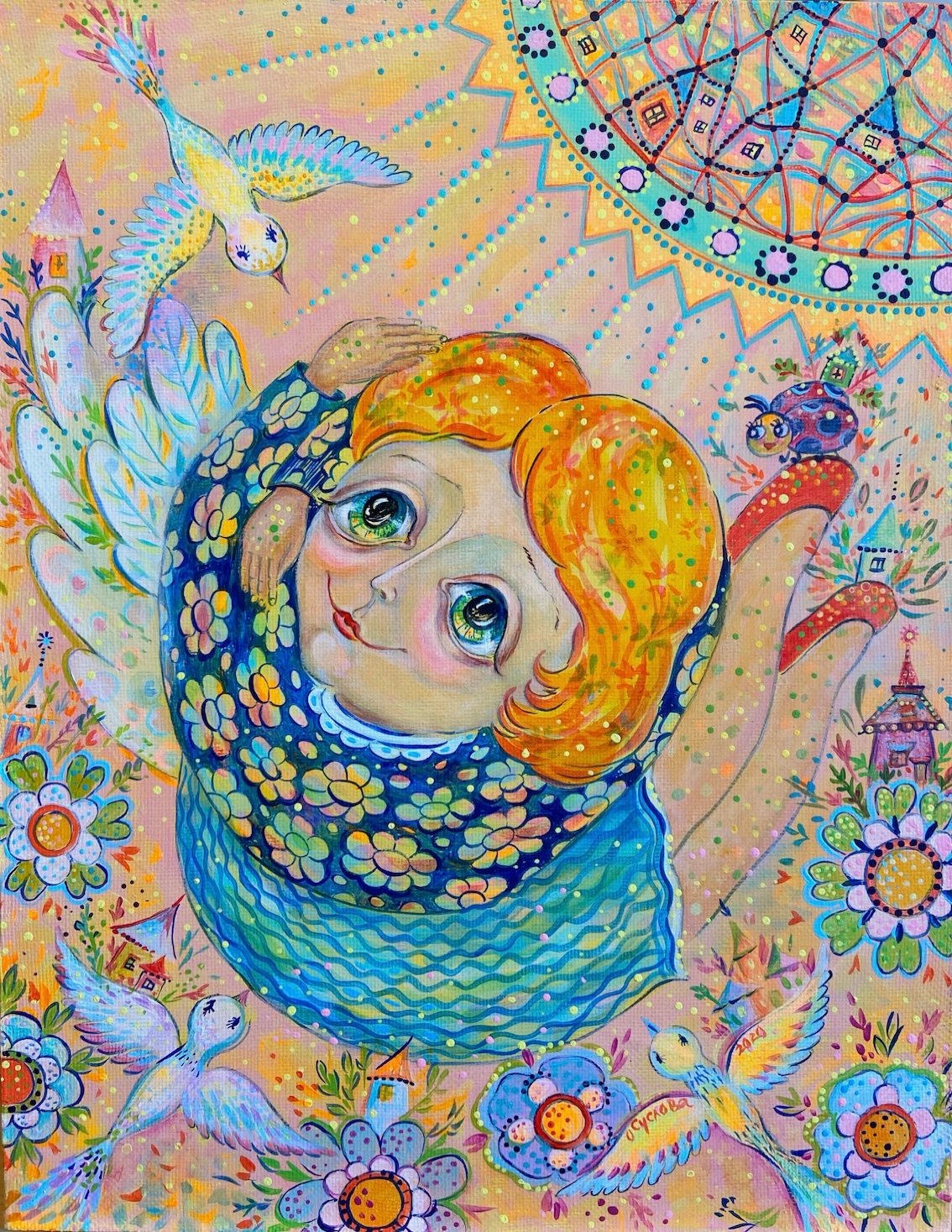 Мама и правда уже искала меня, заглядывая в будку собаки и открытые люки. Мы тихо подлетели к ней, и я одел ей на голову венок из спелых одуванчиков.