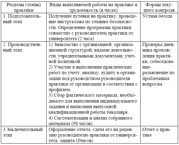 Таблица 2.1 – Содержание производственной (выпускной) практики по профильной направленности «Бухгалтерский учет, анализ и аудит»
