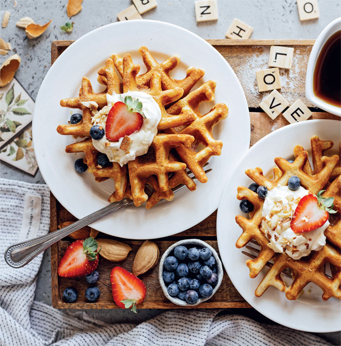 Подача вафель весьма разнообразна – начиная от несладких начинок и соусов, заканчивая свежими ягодами, взбитыми сливками и сладкими топпингами. В каждом рецепте для вашего удобства приведены варианты подачи. Для вафель идеально подойдет кленовый сироп, который получают из концентрированного сока определенных сортов клена и используют в качестве натурального подсластителя. Его обязательно нужно попробовать с горячими вафлями.