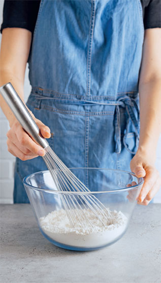 • добавьте в миску сухие ингредиенты и перемешайте венчиком