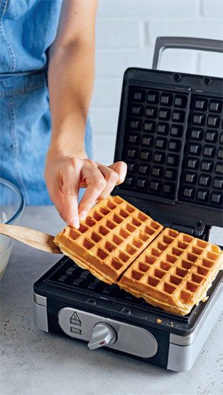 • С помощью деревянной лопатки аккуратно снимите готовую вафлю