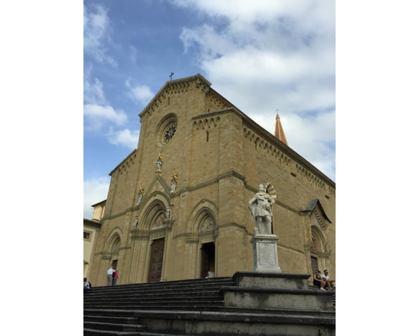 Самая высокая точка – площадь с главным собором, Дуомо, он в Ареццо носит имя Святого Доната, обезглавленного во времена правления своего «одноклассника», императора Юлиана Отступника. Святой Донат одну женщину оживил, одной вернул зрение, изгнал беса из сына римского наместника, а также уничтожил дракона, отравлявшего местный колодец.
