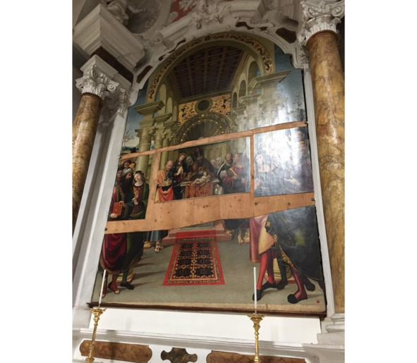 Еще тут – остатки картины начала 16 века, Обрезание Христа; в 1922-м ее украли и сильно повредили при этом. Нашли только фрагменты. Отреставрировали, как могли. Руки бы оторвать, да нет уже этих воров, и разбираются с ними другие судьи.