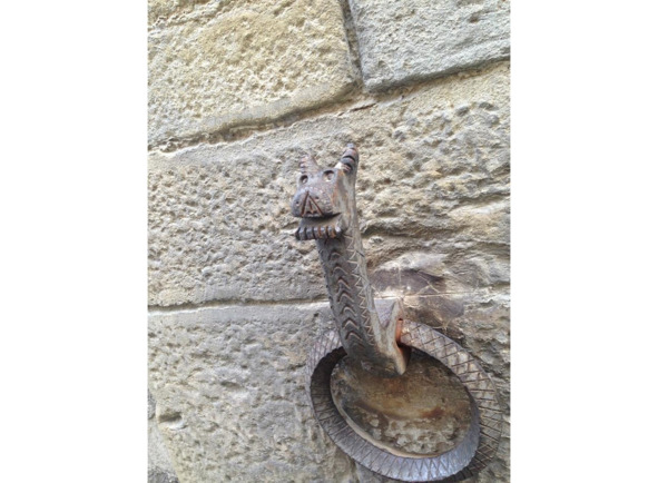 Крюки для привязывания лошадей – дракон из колодца, жертва Сан Донато? Нет, слишком милый.